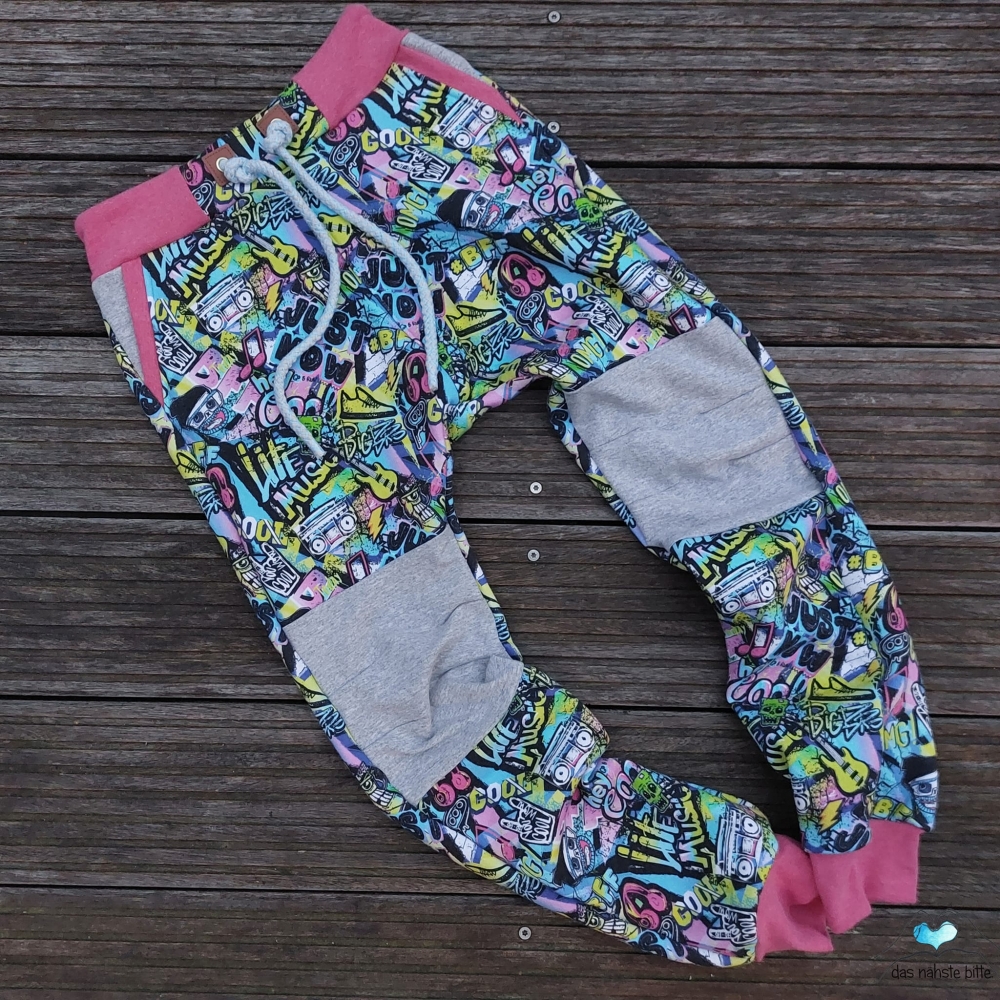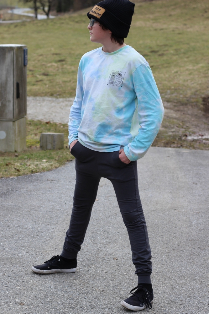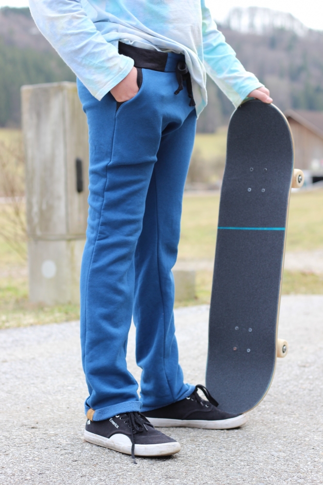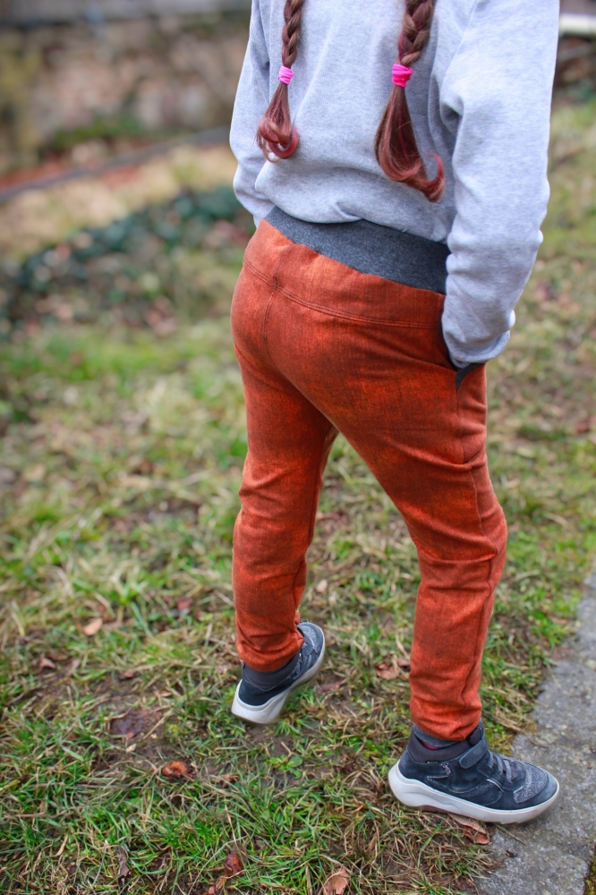 Die Checkerhose Slim ist eine bequeme und lässige Hose mit leicht tiefem Schritt und schmalem Bein, die wahlweise mit Sattel, Taschen oder Knieeinsatz und verschiedenen Beinabschlüssen genäht werden kann. Das raffinierte Bauchbündchen mit einem Einsatz aus Hosenstoff verleiht der Hose dazu das gewisse Etwas. Die Hose ist für elastische Stoffe konzipiert und sitzt schmal an den Beinen, das Gummiband im Bauchbündchen gibt tobesicheren Halt. So ist sie auch für schmale Kinder sehr gut geeignet. Aus weniger elastischem Stoff oder bei kräftigeren Kindern kann sie 1-2 Nummern breiter genäht werden.