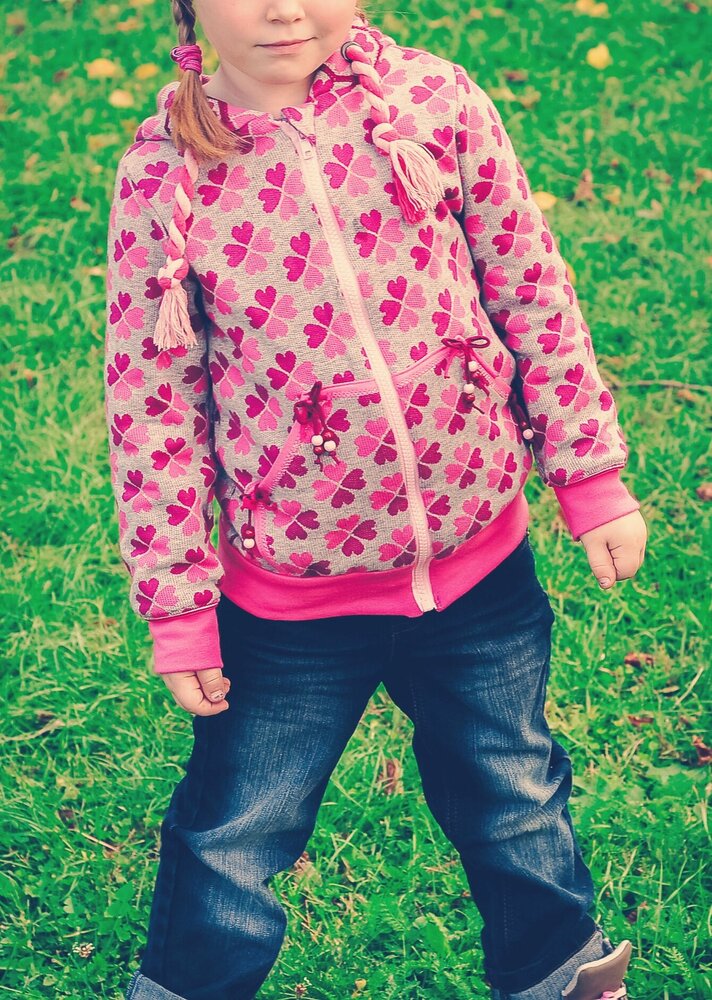 Du kannst die Jacke mit Kapuze oder Kragen nähen. Als Taschen stehen Paspeltaschen, eine Känguru-Bauchtasche oder runde Eingrifftaschen zur Auswahl, die als Beuteltaschen oder abgesteppt genäht werden können.