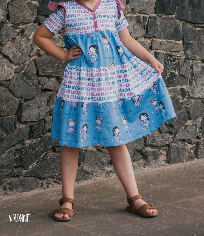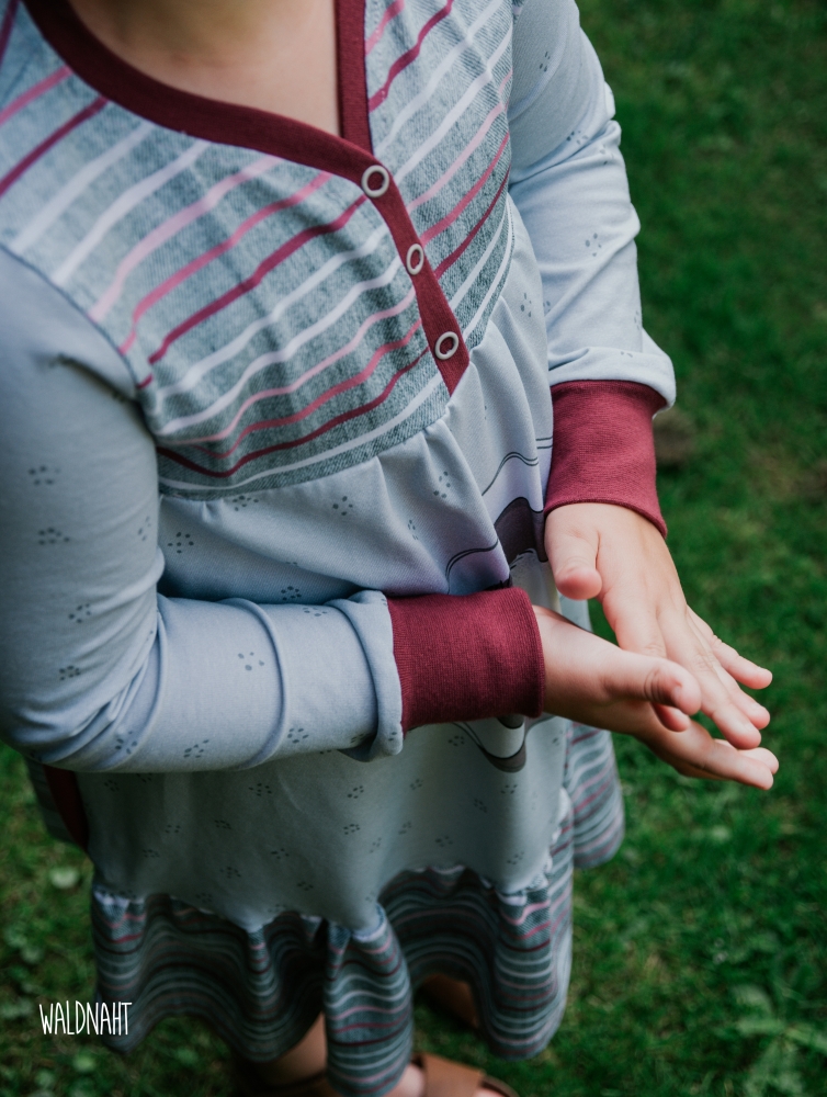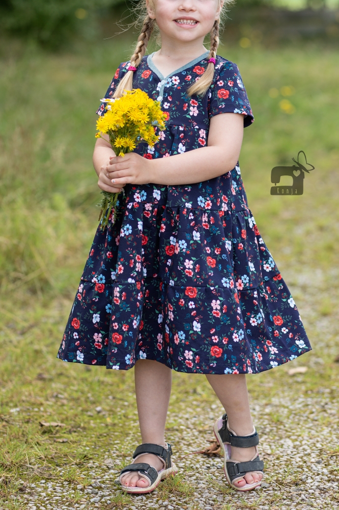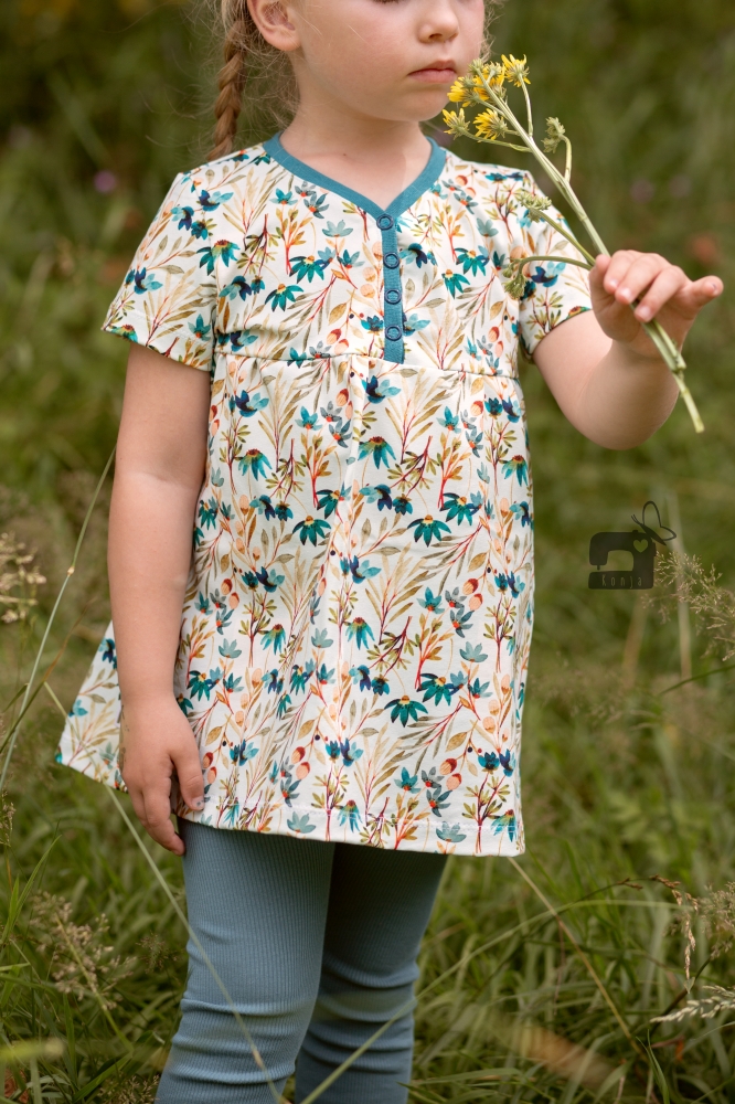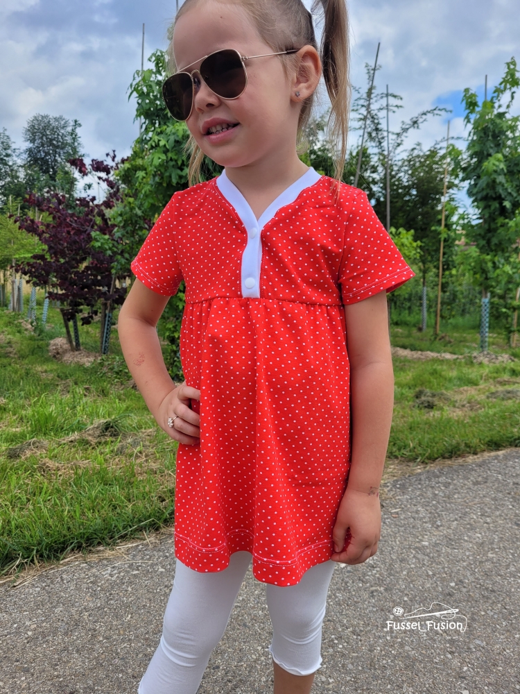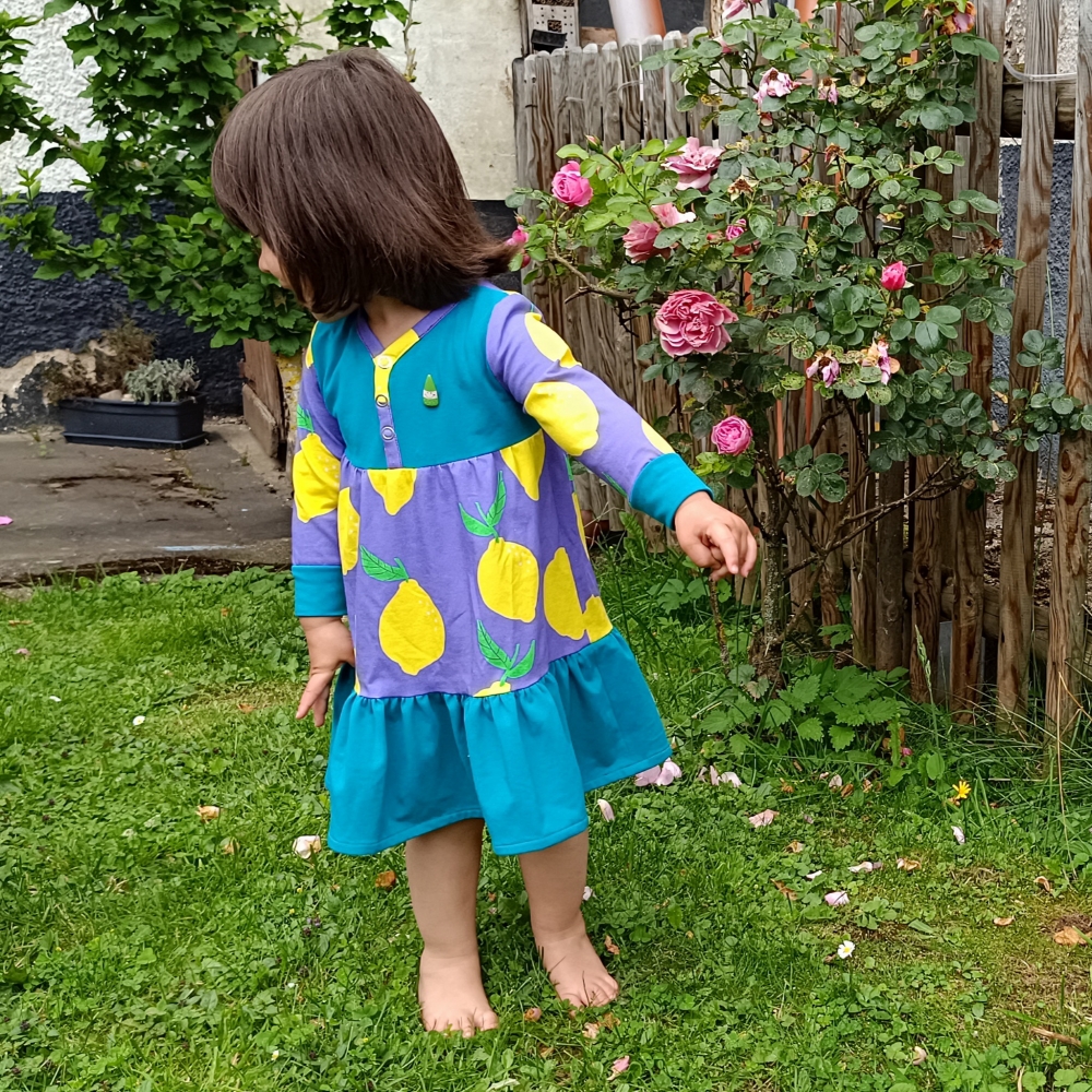 Das Knopfkleid ist ein vielseitiges Schnittmuster, das sowohl als Kleid als auch als Tunika genäht werden kann. Charakteristisch ist dabei die niedliche Knopfleiste in der Passe, die nicht nur unkompliziert genäht wird und toll aussieht sondern auch das Anziehen erleichtert. Optionale Rüschen und Flügelchen verleihen dem Kleid oder der Tunika einen besonders romantischen Look. Das Schnittmuster kommt mit einer sehr umfassenden, reich bebilderten und absolut anfägertauglichen Anleitung. Das Schnittmuster kann auf A4 ausgedruckt und geklebt oder im A0 Format bei entsprechenden Anbietern geplottet werden. Für Beamer-Liebhaber ist eine Beamerdatei mit Ebenen, dicken Linien, gespiegelten Schnittteilen sowie Raster enthalten.