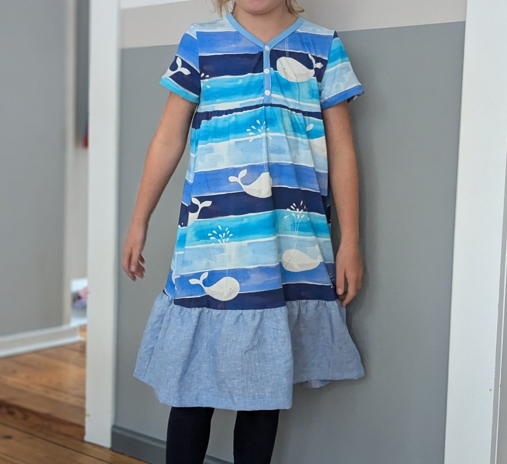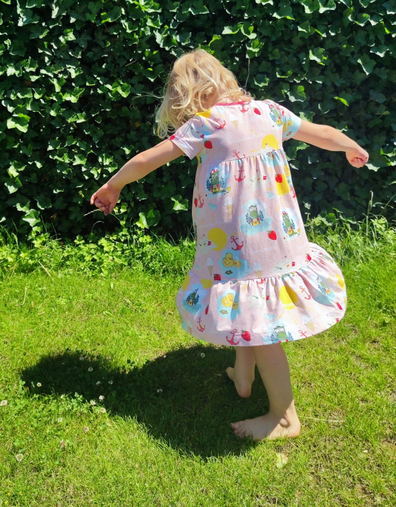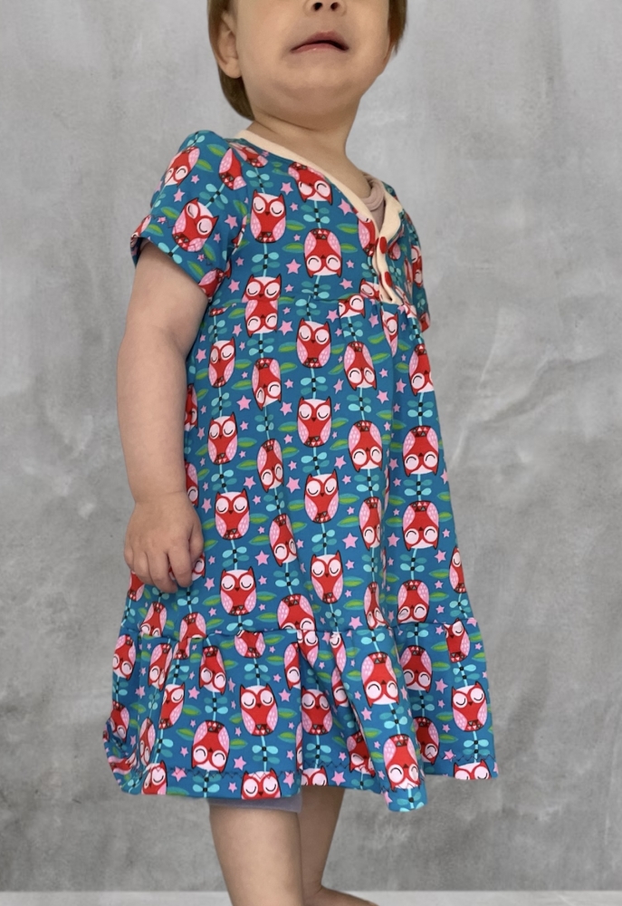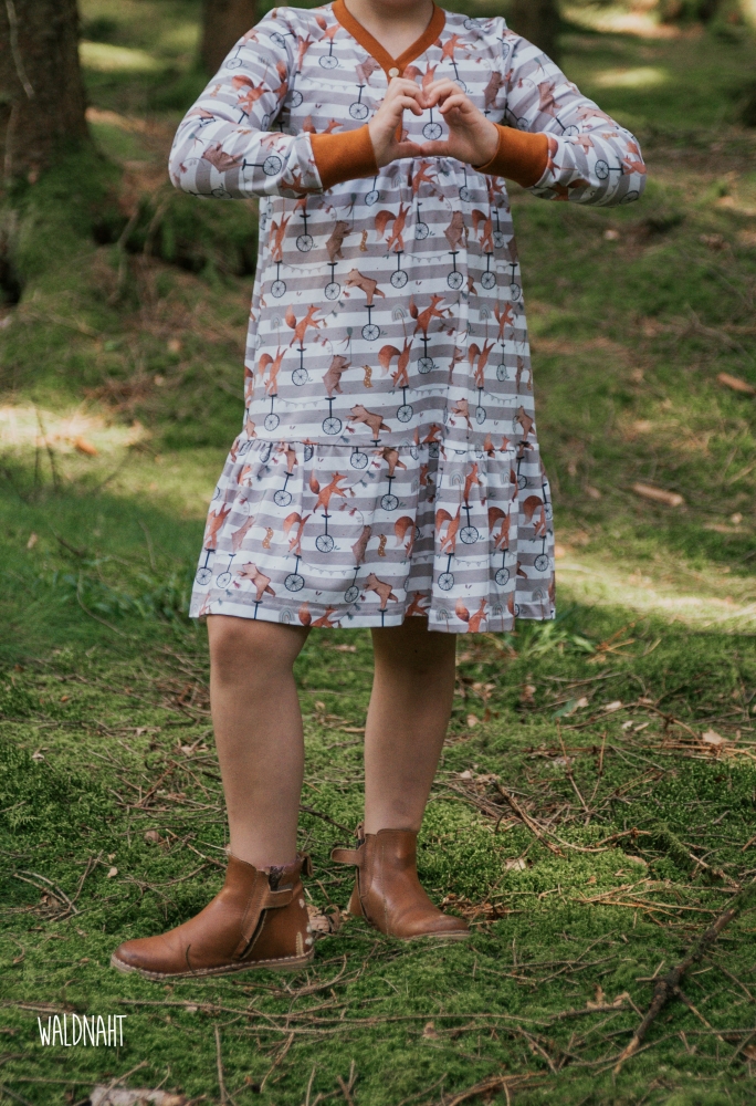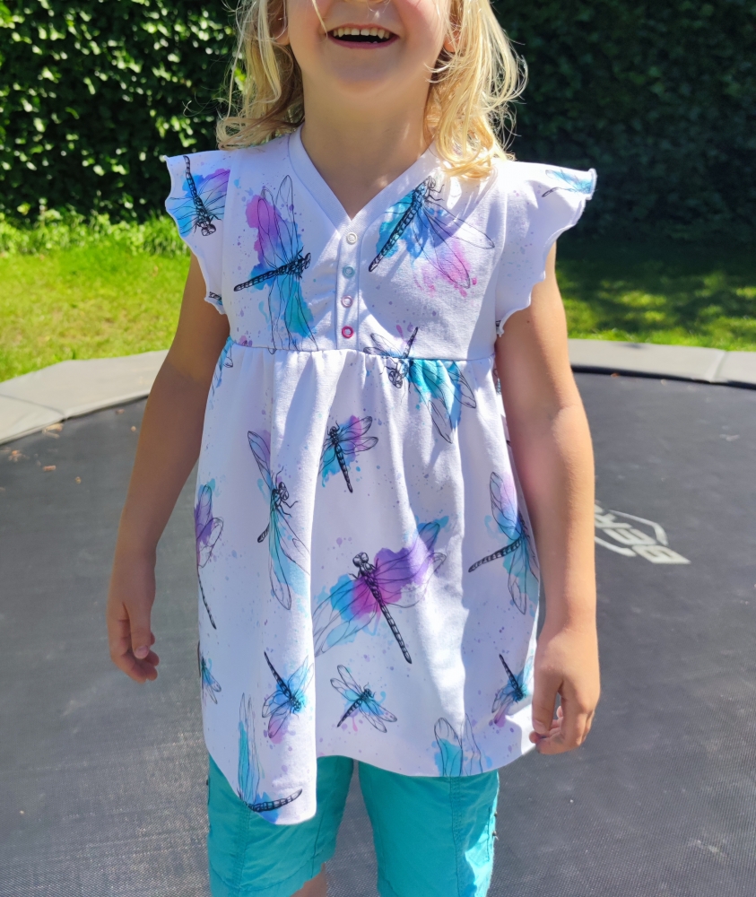 Das Knopfkleid ist ein vielseitiges Schnittmuster, das sowohl als Kleid als auch als Tunika genäht werden kann. Charakteristisch ist dabei die niedliche Knopfleiste in der Passe, die nicht nur unkompliziert genäht wird und toll aussieht sondern auch das Anziehen erleichtert. Optionale Rüschen und Flügelchen verleihen dem Kleid oder der Tunika einen besonders romantischen Look. Das Schnittmuster kommt mit einer sehr umfassenden, reich bebilderten und absolut anfägertauglichen Anleitung. Das Schnittmuster kann auf A4 ausgedruckt und geklebt oder im A0 Format bei entsprechenden Anbietern geplottet werden. Für Beamer-Liebhaber ist eine Beamerdatei mit Ebenen, dicken Linien, gespiegelten Schnittteilen sowie Raster enthalten.