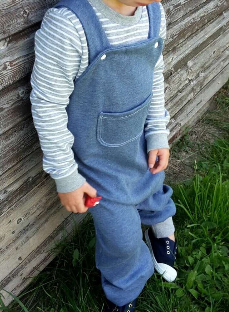 Die Strampelhose ist eine bequeme und mitwachsende Trägerhose, welche aus elastischen oder gewebten Materialien genäht werden kann.